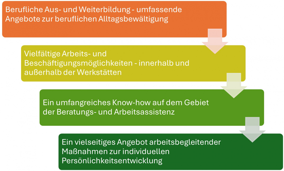 Die Thüringer Werkstätten sind als Arbeitgeber und zuverlässiger Partner von Unternehmen im Freistaat auch ein wichtiger Standortfaktor für Wirtschaft und Dienstleistung. Sie bieten ein breites Spektrum von Produkten und Dienstleistungen an.